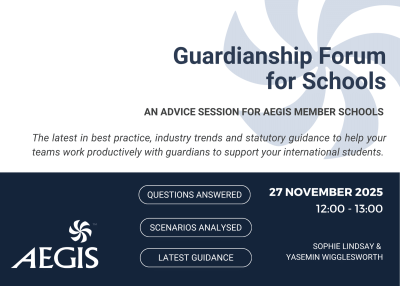Join us for a series of informal drop-in sessions designed for AEGIS member schools to discuss current topics and themes in the world of educational guardianship. These sessions provide a relaxed environment to share experiences, exchange ideas, and explore new developments. Whether you are seeking advice or simply looking to hear the latest in guardianship guidance, the Guardianship Forum offers a supportive space to enhance your practice and knowledge. Come and be part of our vibrant community!